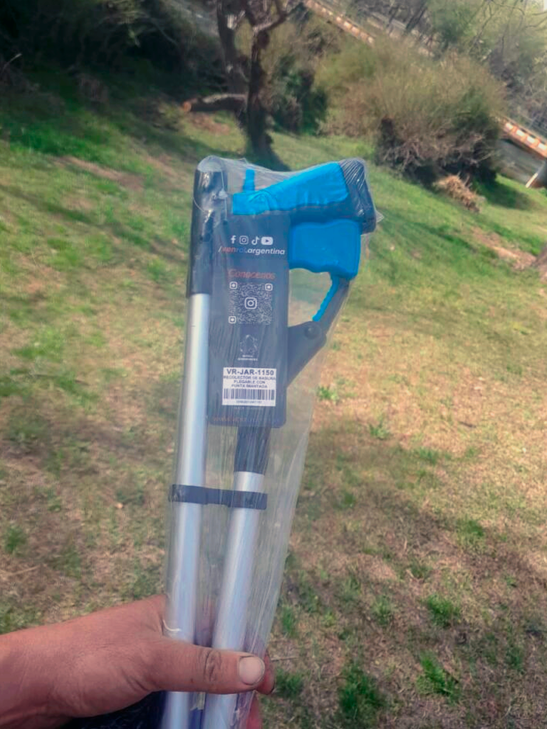 Empezar por algo sorpresivo, decía un maestro de vieja escuela periodística, es saludable para mover la energía de una crónica. Y sí que fue sorpresiva la aparición entre vecin@s, de dos promotoras de la empresa Venrol, “especializada en la comercialización de artículos para áreas verdes”, tal cual reza su página web oficial 2. Las jóvenes ofrecían recolectores de basura (foto 1) con punta imantada, rotación de cabezal y plegable a las voluntades que esa mañana ventosa con augurios de calor primaveral se habían arrimado al convite (el dueño de Venrol, el señor Federico Rolandi donó diez de estos recolectores a la comuna.